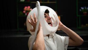 La escuela de Artes Escénicas del Palacio de Festivales comenzó a hacer un casting en enero de 2024 para un nuevo montaje musical. Quince meses después La tienda de los horrores se presentó en una doble sesión, para público juvenil por la mañana, para público en general por la tarde. El resultado no solo es esperanzador (hay mucho trabajo presente para el futuro y buenos andamiajes teatrales detrás), sino una versión donde Audrey II -la planta carnívora aparecida después de un extraño eclipse- logra vida propia y voz diferenciada (casi siempre interpretada por varones, aquí femenina). La planta es el centro del musical, donde crece, habla, se mueve y se nutre con sangre humana, gracias a un manipulador de la planta -Mario Ruiz- que acaba agotado: “Al principio tenía agujetas. Luego es todo más fácil”.