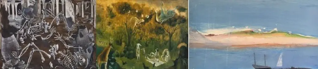 La mirada a la naturaleza en busca de algo más que la contemplación nos vincula a De la Vega con Maruja Mallo o Leonora Carrington.