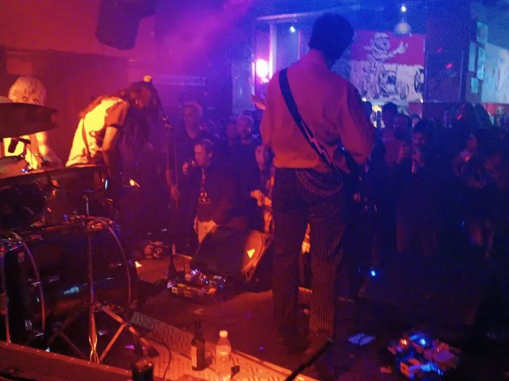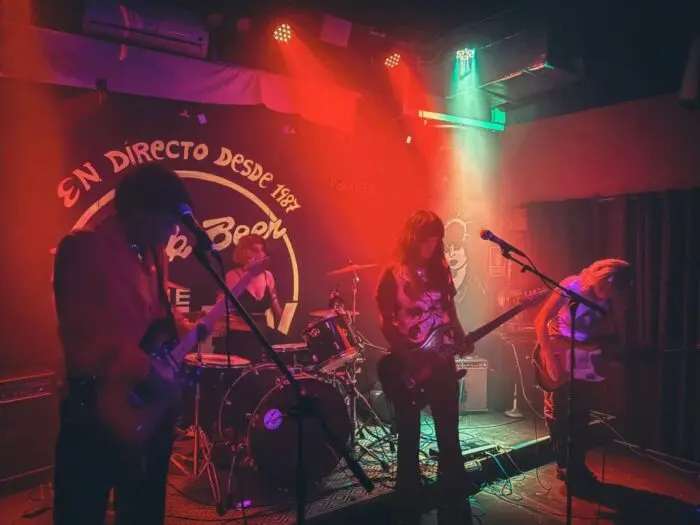 Y así, entre una densa nube de humo y con un ambiente de luces pretendidamente más tenue, entran en escena los argentinos. Bajando un poco las revoluciones pero no por ello la intensidad, la banda nos envuelve entre los temas de su álbum “Entre Sombras”, recientemente relanzado en nuestro país. La cara más shoegaze/dreampop la pone Ignacio Perrotta, a la guitarra y con un tono de voz de más calidez que el de su compañera Irina Tuma, también a la guitarra y quien sin duda aporta la garra, los colmillos y la cara más punk de estos vampiros con sus tonos agudos y expresivos en contraste a su actitud estoica. Todo ello lo acompasan perfectamente Luana Giobellina al bajo y Mora Murguet a la batería, haciendo que oscilemos entre lo melancólico y lo rítmico sin perder en ningún momento la intensidad que se espera de un show como el suyo.