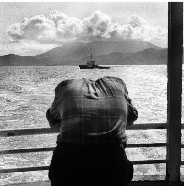 La fotografía fue realizada durante un viaje en ferry a la isla de Lantau. En ella, un hombre, de espaldas, parece haber sustituido su cabeza por un barco que se aleja en la lejanía, gracias a un juego visual inesperado. La escena fue captada de forma casi instintiva y bajo una medición de luz incorrecta, lo que provocó una sobreexposición que convirtió el negativo en una copia difícil de positivar, obligando al autor a múltiples pruebas en el laboratorio.