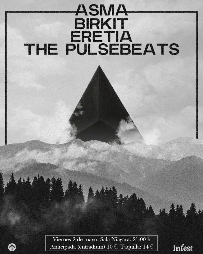La Sala Niágara de Santander acogerá este viernes 2 de mayo, a partir de las 21:00 horas, una nueva edición del Infest, una propuesta musical que reúne a cuatro bandas con estilos diversos pero con un denominador común: la independencia y la experimentación sonora. El cartel lo conforman los grupos Asma, Birkit, Eretia y The Pulsebeats.
