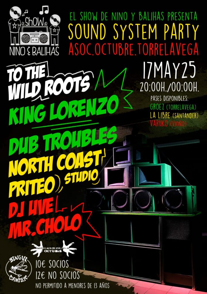El cartel lo encabezan TO THE WILD ROOTS, colectivo de Segovia encargado de proporcionar el sonido con su torre de altavoces especializada en bajas frecuencias.