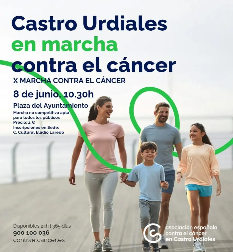 La Asociación Española Contra el Cáncer (AECC) ha convocado la décima edición de la Marcha Contra el Cáncer en Castro Urdiales, que se celebrará el domingo 8 de junio de 2025. La salida está programada para las 10:30 horas desde la Plaza del Ayuntamiento, punto que también servirá de meta.