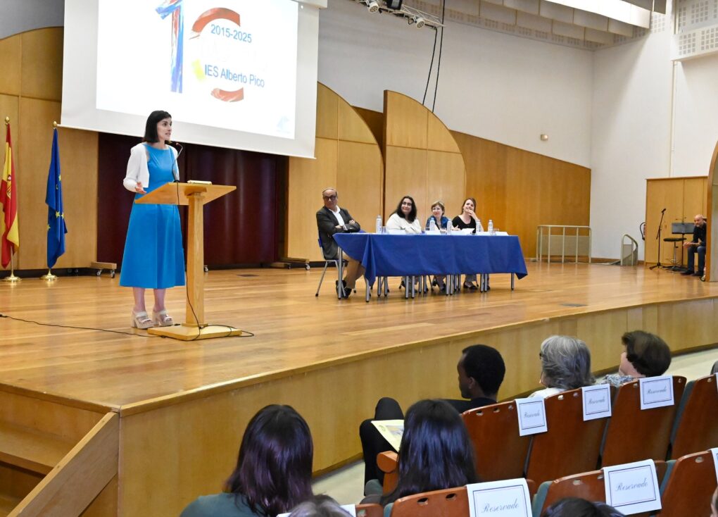 La celebración contó con intervenciones especialmente emotivas, como la de Amalia Calzada, antigua profesora de francés del IES Alberto Pico e impulsora de la puesta en marcha del Bachibac. Sus palabras recordaron las incertidumbres con las que comenzó el programa, superadas gracias a la larga experiencia del centro en la enseñanza bilingüe y al esfuerzo constante de docentes y alumnado. Asimismo, la profesora destacó las numerosas ventajas del Bachibac, subrayando la proyección del alumnado que lo cursa. Al respecto, relató la alegría de ver cómo antiguos alumnos han llegado a ser docentes de francés o integran organismos tan prestigiosos como el CERN de Ginebra.
