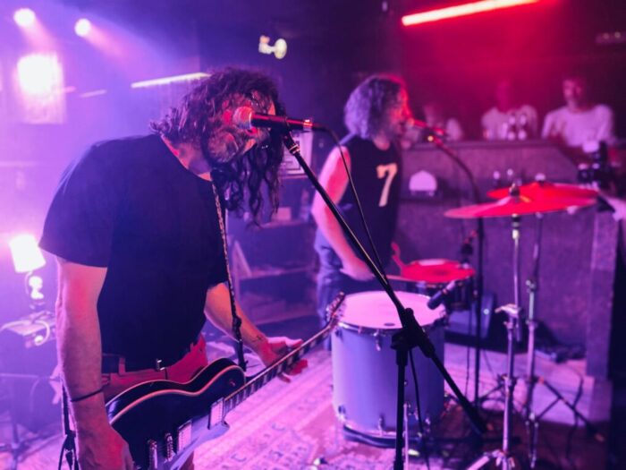 Después de una pausa salieron a escena Bruno y Chuchi o lo que es lo mismo Agujero. La banda solo lleva una guitarra electrica, caja, timbala y un par de platos. Presentaban su primer larga duración, titulado «7» (Producciones Tudancas y Folc Records, 2025), presentados en una cuidada edición en vinilo. Su estilo es una mezcla entre el punk más primigenio o garagero al estilo de Los Saicos y una acertada conceptualización artística, que se aprecia desde la escenografia con la que llenaron el escenario de la Sala Niagara hasta en las frases lanzadas a modo de slogans de sus letras.