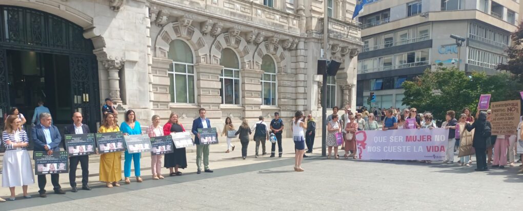 Y un mes después, también, la soledad del PP ha ido a más en la concentración: el resto de grupos no se ha concentrado a su lado, haciéndolo en un lateral los concejales de PRC, IU o Vox, y a otro lateral ediles del PSOE y la Comisión 8 de Marzo, que agrupa a las principales asociaciones feministas de Cantabria –entre ellas Consuelo Berges, que trabaja directamente con mujeres víctimas de violencia de género–, y que este mes ha aglutinado a más personas que el mes pasado.