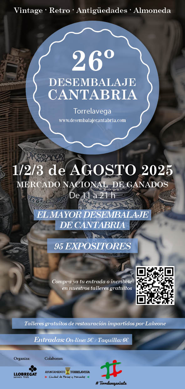 Desembalaje Cantabria, ha destacado García Viñas, se ha consolidado como un evento de referencia en el sector de las antigüedades en el norte de España. A lo largo de sus 26 ediciones, ha generado un notable impacto económico en el entorno, especialmente en los sectores de la hostelería, el comercio, la restauración, el transporte y los servicios auxiliares, tanto por la afluencia de visitantes como por la participación de los propios expositores. “El Desembalaje es una cita importante para la ciudad y para el sector ferial de Torrelavega. Contribuye a dinamizar la actividad comercial y turística durante el verano y refuerza el uso del Mercado Nacional de Ganados como espacio polivalente para grandes eventos”, ha subrayado.