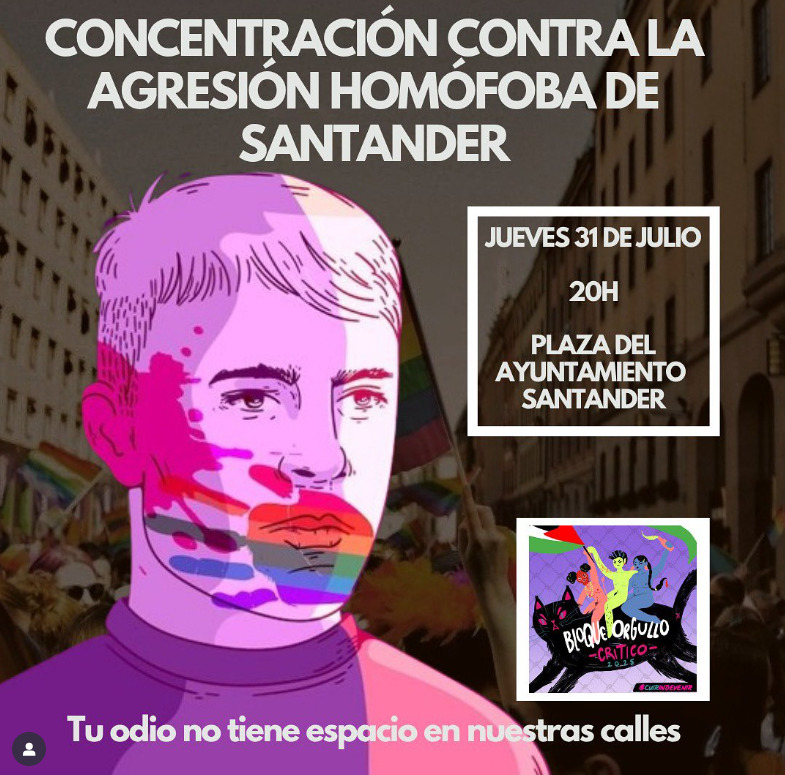 Desde el Bloque Orgullo Crítico de Cantabria y junto a Óscar, convocan esta concentración porque «cada día aumentan los delitos de odio, las agresiones y la violencia homófoba, legitimadas por un sistema que nos quiere callades, invisibles y con miedo».