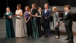 Cuando enseño les digo: “Preguntaros: ¿cuál es la razón por la cual canto?, ¿qué es lo que quiero dar al público? Si es mostrarme a mí mismo para ponerme un vestido bonito, estar en el escenario y escuchar el aplauso, eso nunca es la razón buena”. Algunos buscan demasiado eso; hay que buscar el balance (dicho al modo francés) porque también necesitamos eso. Necesitamos gente como Anna Netrebko que cantan con ella las luces del escenario y se siente feliz. Hace falta cantantes como ella; si todas fueran como yo sería un poco triste. (O mejor) (Risas) A veces pasa también esto: gente que es introvertida, busca el escenario para encontrar el balance, para obligarse a salir de sí mismo.