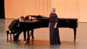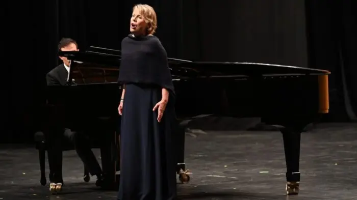 De padres eslovenos amantes de la ópera en esloveno, Bernarda Fink se formó en Buenos Aires en los años 60 y 70 del pasado siglo, primero en corales y luego en ese lugar privilegiado de formación que es el Instituto Superior de Arte del Teatro Colón. Su salto a Europa (salto con un océano musical por medio), de la mano de un director suizo de grato recuerdo, le llevó a ser conocida y artista preferida de directores como Nikolaus Harnoncout, Rene Jacobs, Ricardo Mutti, Daniel Barenboim, Bernard Haitink… Más de cincuenta grabaciones permiten conocer su dominio de compositores como Bach o Monteverdi, Piazzolla o Mozart, Schubert o Guastavino. Las grandes orquestas del mundo la requirieron hasta su retirada parcial en el año 2022. Santander ha revivido sus ganas de cantar, algo que hizo en dos conciertos.