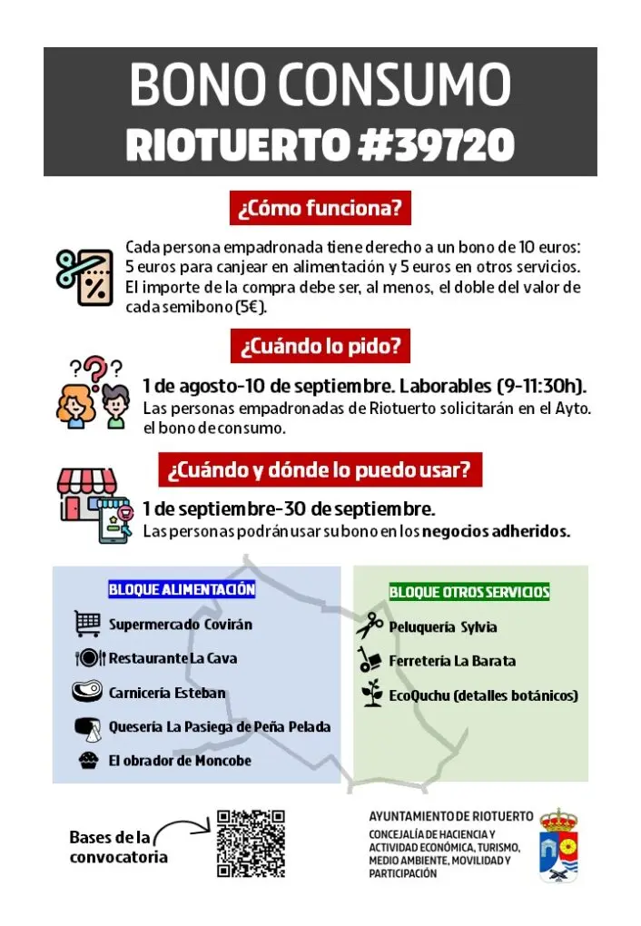 La concejalía de Hacienda y Actividad Económica del Ayuntamiento de Riotuerto ha impulsado por primera vez el bono de consumo #39720, del cual se han repartido ya más de 1.000 euros.