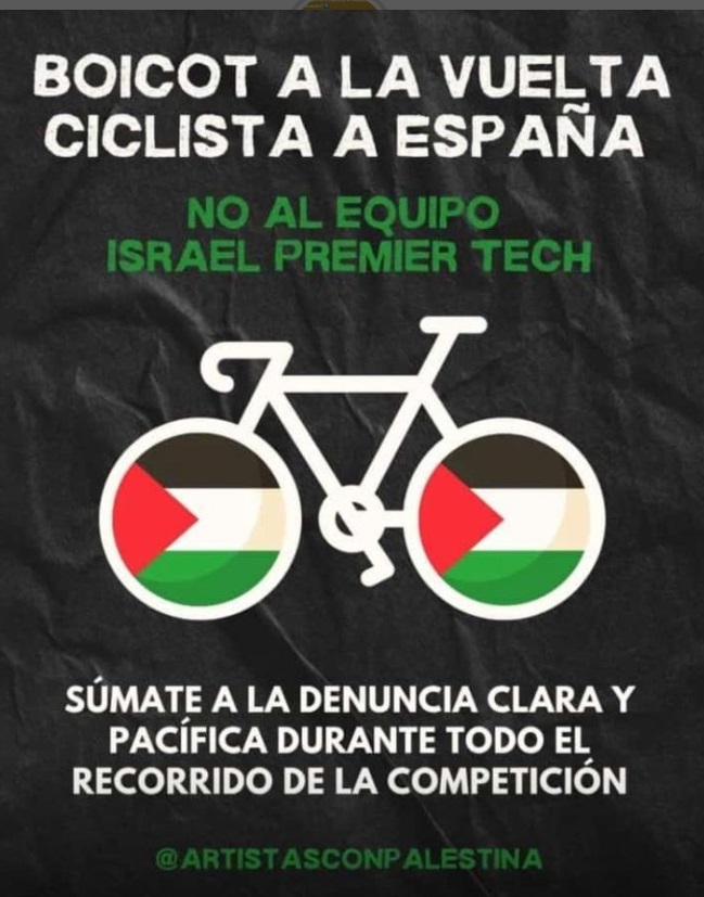 ConBici, coordinadora estatal en defensa de la bicicleta de la que forma parte Cantabria ConBici, denuncia que, a pesar de las resoluciones del Tribunal Internacional de Justicia (TIJ) y de las denuncias de organismos internacionales sobre crímenes de lesa humanidad y violaciones sistemáticas de derechos humanos, ninguna institución deportiva ni política haya sido capaz de vetar la participación del equipo israelita en eventos internacionales de máxima repercusión mediática como la Vuelta a España.