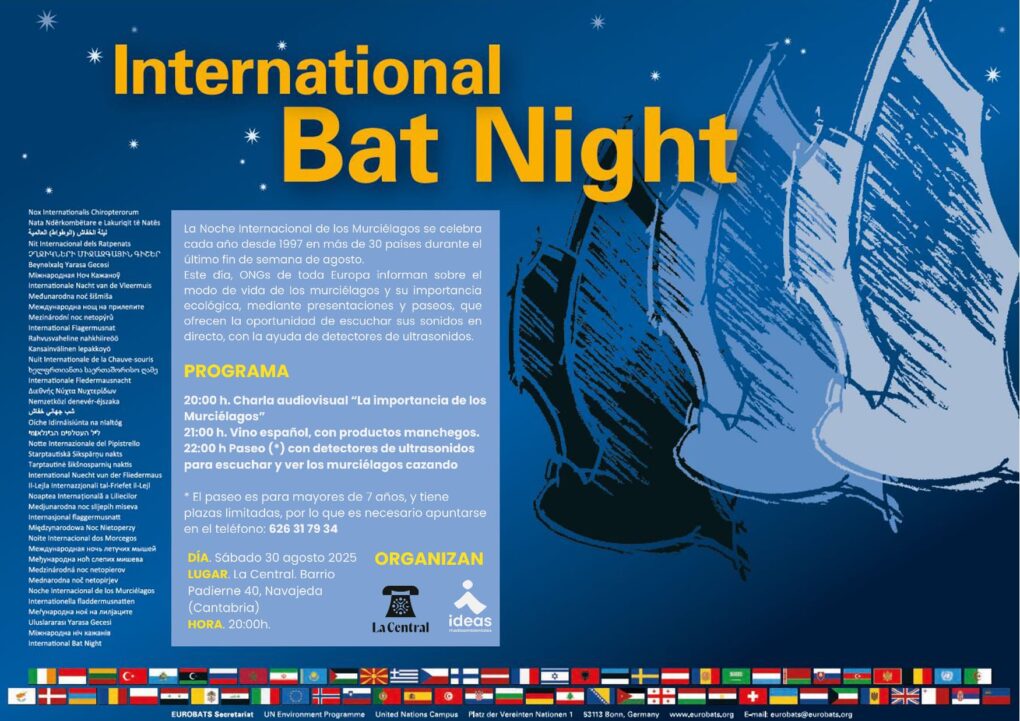 El evento se celebrará en La Central, en el barrio Padierne 40, en Navajeda (Entrambasaguas) y está organizado por la asociación local La Central junto a la entidad Ideas Medioambientales. La jornada busca sensibilizar sobre la importancia ecológica de los murciélagos y fomentar su conocimiento mediante actividades divulgativas dirigidas a todos los públicos.