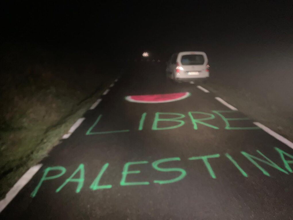 Cantabria amanece con pintadas en carreteras en apoyo al pueblo de Gaza y rechazo al equipo israelí en La Vuelta