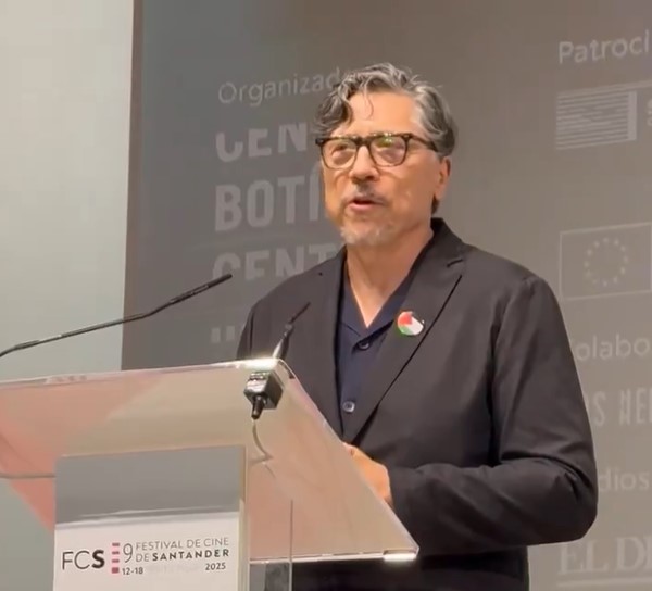 Carlos Bardem aprovechó la visita para sumarse al llamamiento de la cultura de Cantabria para frenar el genocidio que se está cometiendo en la Franja de Gaza. Fue este sábado, a mediodía, en el Auditorio de El Sardinero.