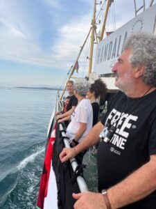Tamayo sólo hizo una etapa de esa travesía, entre Santander y A Coruña, pero le sirvió para respirar el ambiente de una Florilla de la Libertad, donde se coincide con personas de distintos países y se habla de la causa del pueblo palestino, los diferentes puntos de vista y las diferentes experiencias. Había también gente de Palestina, lo que también ayuda a comprender lo que allí lleva sucediendo desde que se constituyera el Estado de Israel y desde antes. «Ves que hay gente que se moviliza y que es solidaria con otros países», como un sentimiento de esperanza de que no todo está perdido. Y recuerda lo enriquecedor que resultaba que fuera un viaje donde «había gente que se subía y se bajaba». No era un barco grande, no podían ir muchos activistas, pero las energías se renovaban en cada puerto.