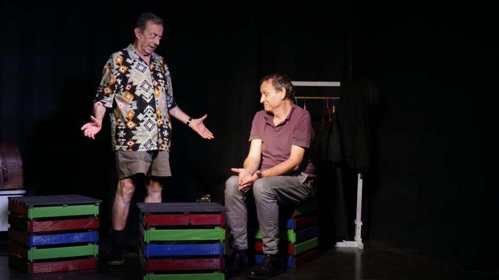 ‘El Encuentro’ propone un juego escénico cargado de misterio y reflexión. Sus protagonistas, interpretados por Juanjo Paredes y Miguel Meca, dan vida a Extraño y Cualquiera, dos personajes enfrentados en un espacio indefinido donde se entrelazan las nociones de verdad, ilusión y deseo de plenitud.