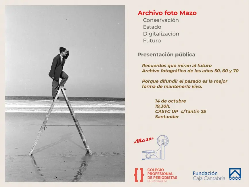 El Colegio de Periodistas de Cantabria ha organizado la presentación pública del Archivo Mazo el próximo martes 14 de octubre a las 19:30 horas en la sala CASYC UP de la Fundación Caja Cantabria.