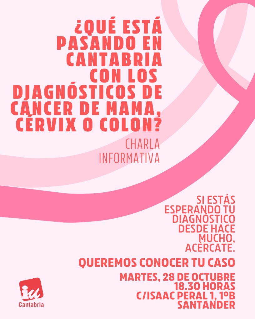 Izquierda Unida de Cantabria ha organizado una charla informativa para abordar la situación de los diagnósticos de cáncer de mama, cérvix y colon en la comunidad.