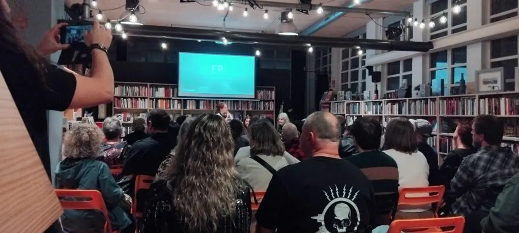 La librería La Vorágine se llenó en la tarde del sábado 16 de noviembre en el acto inaugural de las jornadas culturales antifascistas organizadas por los colectivos Las Calles contra el Fascismo y Rock Contra el Fascismo, que combinaron presentaciones, cine y música en un formato que apostó por la cultura como herramienta contra el odio.