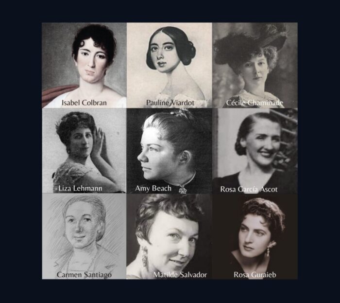 Las nueve compositoras del disco. Retratos y fotos de dos siglos: XIX y XX