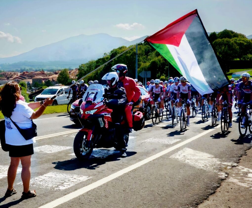 Hay que recordar que la protesta se producía por la presencia de un equipo israelí en la competición, el Israel – Premier Tech. No sólo se criticaba la nacionalidad, sino los vínculos que tiene con el Gobierno de Israel y los que tiene el propietario, directamente, con Benjamin Netanyahu, el presidente del Gobierno. Las protestas pretendían que la organización de la carrera expulsara al equipo, algo que no se produjo en ningún momento.