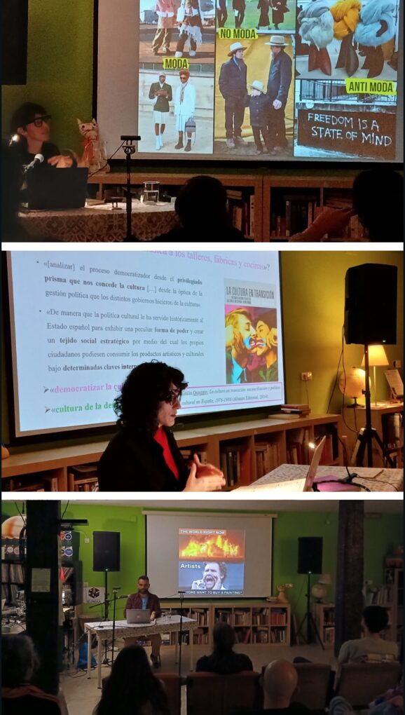 En el Café Entrehuertas también participó Alejandro Bombín, pionero internacional del arte glitch, un estilo artístico que explora la estética del error. En su ponencia acercó a los asistentes el proceso creativo de su obra “Fantasía fósil”. Por su parte, la musicóloga Toya Solís analizó las políticas musicales en la transición española ofreciendo una visión crítica desde nuevos enfoques feministas y sociales.