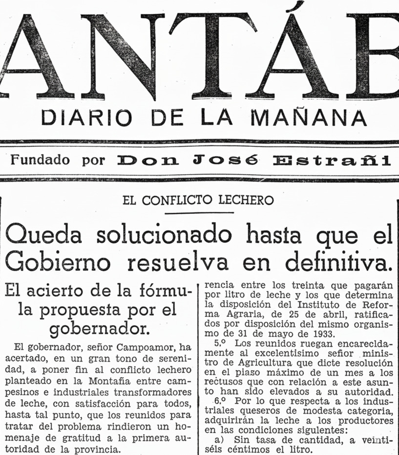 El pleito lechero de 1933 en Cantabria