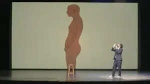 El escenario donde ocurría casi todo estaba casi vacío, con una silla solitaria en medio y una pantalla que anunciaba el espectáculo en un video animado que pasaba de una placidez pastoril a un desastre de nubes e incendios. ¿Mensaje apocalíptico? El artista hablaba de la esperanza, algo que no se lleva muy bien con el apocalipsis. Lo suyo fueron -entre otros- una retahíla de contradicciones dedicadas a un espectador poco comprensivo que no entendía algo tan sencillo como “políticamente correcto” (todo un oxímoron).