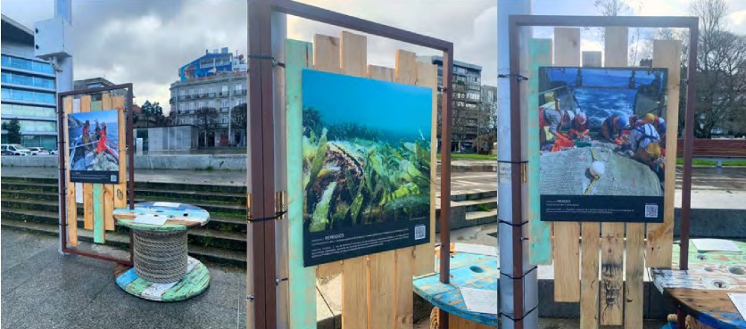 La exposición está compuesta por elementos recuperados (bobinas de madera, paneles, soporte de tablas y sogas) a los que se añaden algunos elementos de nueva fabricación, usando siempre materiales reciclables y respetuosos con el medio ambiente. Con estos elementos se componen los 14 paneles de la muestra. De ellos, cuatro son informativos y diez cuentan con fotografías representativas de los proyectos ejecutados durante las cinco convocatorias de ayudas resueltas, que han contado con más de 24 millones de euros, cofinanciadas por el Fondo Europeo Marítimo y de Pesca (FEMP).
