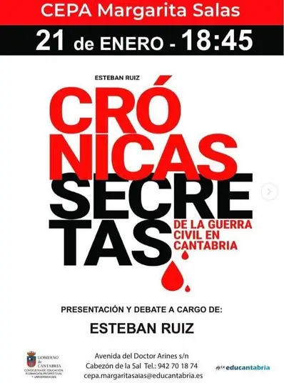 Siguiendo con la gira de presentación de su libro, Esteban Ruiz recalará en el Centro de Educación de Personas Adultas Margarita Salas, en Cabezón de la Sal, mañana, miércoles 21 de enero, a las 18:45.