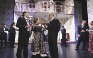 Una versión de Fernando Ramos y dirección de Paco Carrillo con muchos guiños actuales y todo un repertorio de frases de conocidas canciones colocadas oportunamente para causar la hilaridad del respetable: Estar enamorado es – Te estoy amando locamente – Y yo caí, enamorado de la moda juvenil – Anda jaleo… La escenografía destaca por su sencillez y un juego de puertas que parecen sacadas de un videojuego (aquí solo utilizaron una de las tres habituales). Destacar las actuaciones de Pedro Montero como Cabellera (su vis cómica es singular y funciona), los cambios y matices de Beatriz Solís como casadera, la presencia escénica y buen decir de Manuel Menarguez (Don Lucas) y esos bailes, morcillas y cantilenas de Dani Jaen (Don Luis). Una adaptación 2.0 que quiere reivindicar la libertad de la mujer y su derecho a elegir la vida que ha de llevar. Buenas intenciones que se pierden en esquemas de siglos pasados, estos -todo un acierto- vistos con un humor de hoy en día. Una farsa muy agradable.