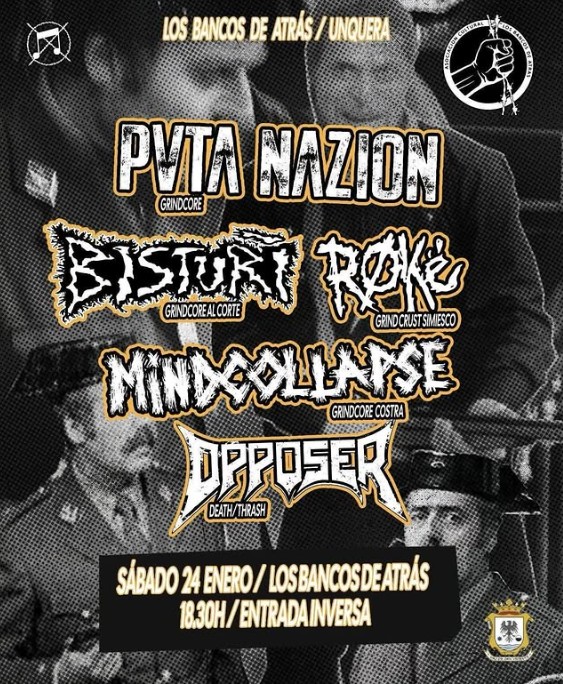 El cartel está encabezado por PVTA NAZION, formación santanderina de grindcore, acompañada por los madrileños Röke y Mindcollapse y por los también cántabros Bisturí y Opposer, que completan una propuesta centrada en subgéneros como el grindcore clásico, el grindcore costra, el grindcrust y el death thrash.