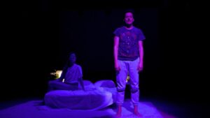 Escenografía sencilla: una cama, dos mesas de noche, un vestidor con espejo y una pantalla que cuenta momentos felices. Los actores ya están metidos en sus papeles -y simulando sueños entre sábanas- mientras el público va entrando y ve pasar imágenes de lugares reconocibles: el faro de Santander, costa Quebrada, el bosque de secuoyas de Cabezón… ¿Estamos en Cantabria, en Argentina, en algún continente lejano? No importa mucho (salvo un final desde las antípodas telefónicas): es una historia sobre los vínculos amorosos que se distancian, que se rompen, generando recuerdos, complicidades, sensaciones y un extrañamiento del otro/a: “¿Te acuerdas cuando fue eso?”. Los planos y escenas se suceden con una cama cómplice del pasado, de insomnios del presente, de confidencias atemporales. Ella (Amparo Alcaraz) desborda de energía y hace creíbles las evocaciones. El (Juan Antonio Sanz) recrea un personaje con dudas, momentos de alegría y lágrimas. Dos actores que se desnudan espiritualmente a pocos metros de un público que vive sus miedos y sus testimonios como si fueran los suyos. Objetivo logrado.