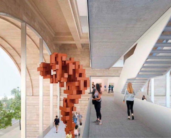 Hay otro condicionante para el edificio, que opta también por elevar la altura de sus salas para acoger las obras, lo que implica, según sus cálculos, una pérdida de superficie total del 4,3% con respecto a la actual y una pérdida de superficie sobre rasante del 12,5%.