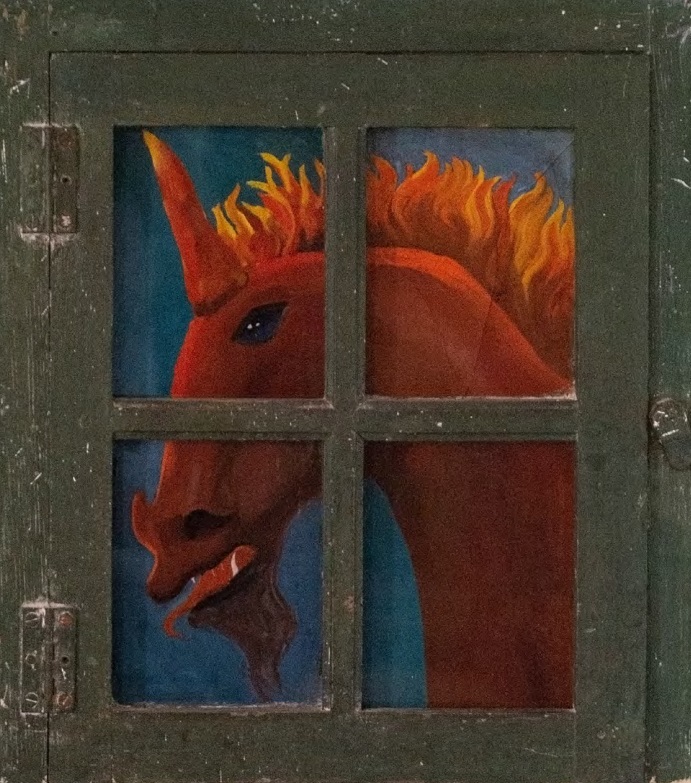 La etapa en Saint-Martin-d’Ardèche, donde la pareja convirtió su casa en una “obra de arte total”, constituye uno de los núcleos narrativos de la muestra. Carrington pintaba muebles y ventanas mientras Ernst esculpía figuras en relieve en la fachada. En el inacabado ‘Self-Portrait with Max Ernst’ (1938), ella aparece como “la mariée du vent”, vestida de rojo y asociada a un caballo, mientras Ernst se identifica con Loplop, su alter ego aviar .
