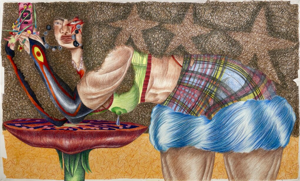 Elise Florentino (Santo Domingo, 1998) es una artista visual afincada en Oviedo, España, cuya práctica se centra en el dibujo a lápiz de color como medio principal. Esta técnica, profundamente vinculada a su infancia, le permite construir imágenes de gran formato,radicales e inmersivas, donde el dibujo deja de ser un gesto íntimo para convertirse ne un espacio de confrontación. Se formó en Grabado e Ilustración en al Escuela de Arte de Oviedo y en Bellas Artes en Chavón, la Escuela de Diseño en la República Dominicana, desarrollando una práctica que entiende el acto de dibujar como una forma de pensamiento y como una exposición directa de su mundo interior.