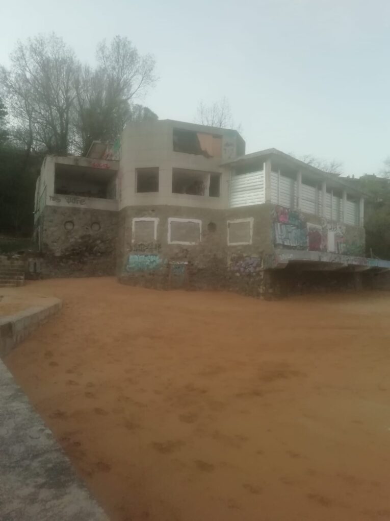 Lo que fue un reconocido edificio ¬que tras años de funcionar como balneario más tarde se reconvirtió en bar restaurante y posteriormente en lugar de actividades marinas, con sus vestuarios o sus zonas para guardar tablas de windsurf- se ha tornado en un mazacote de hormigón y cemento abandonado, sucio, maloliente, lleno de pintadas