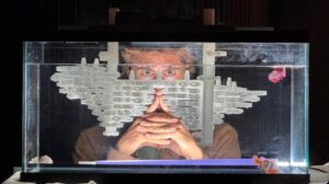 Hacer una crónica de una obra de teatro surrealista solo puede hacerse en el mismo tono de delirio y absurdo con el que fue presentada la semana pasada en Santander. Alguna representación previa hubo en una ciudad que no tiene mar y lo abisal sonaba allí a desvaríos de gentes del norte. Abisal es una distopía con agua de mar creada por el cántabro Jorge Prieto, artista polifacético, a ratos con piraguas en su cabeza, psicodélicos rayos laser en su voz, actor y cantante residente en Madrid con vistas al Cantábrico.