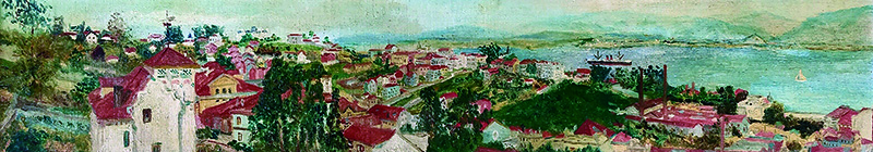 Una mirada, a veces desde la altura, lejana; una mirada a ras de tierra, otras veces. En cualquier caso, una mirada, a despecho de las distancias, siempre atenta, no solo a relevantes motivos, sino también a los pequeños detalles que conforman cada una de los trabajos que se desarrollan en el puerto de Santander o la presencia de bañistas en alguna de las playas. Una mirada segura, cuyo pincel no precisa de corrección alguna. Una suerte de aquí te pillo, aquí te mato, en clave pictórica: el artista mira de cerca el atraque de un barco, pongamos por caso, o de lejos, el palacio de la Magdalena o el faro de Cabo Mayor, pongamos por otro caso, y, sin pensárselo mucho ni poco, el pincel vuela, en complicidad con la paleta, y pinta lo que la mirada ve, sin más motivación que el impulso de no dejar escapar el momento.