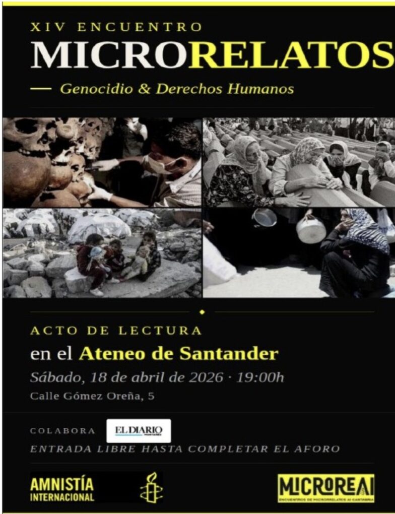 El próximo sábado 18 de abril, a las 19:00 horas, el Ateneo de Santander acogerá el acto de lectura de los relatos seleccionados en el XIV Encuentro de Microrrelatos organizado por Amnistía Internacional Cantabria. La cita reunirá a participantes y público en torno a una iniciativa que busca fomentar la reflexión sobre los derechos humanos a través de la creación literaria.