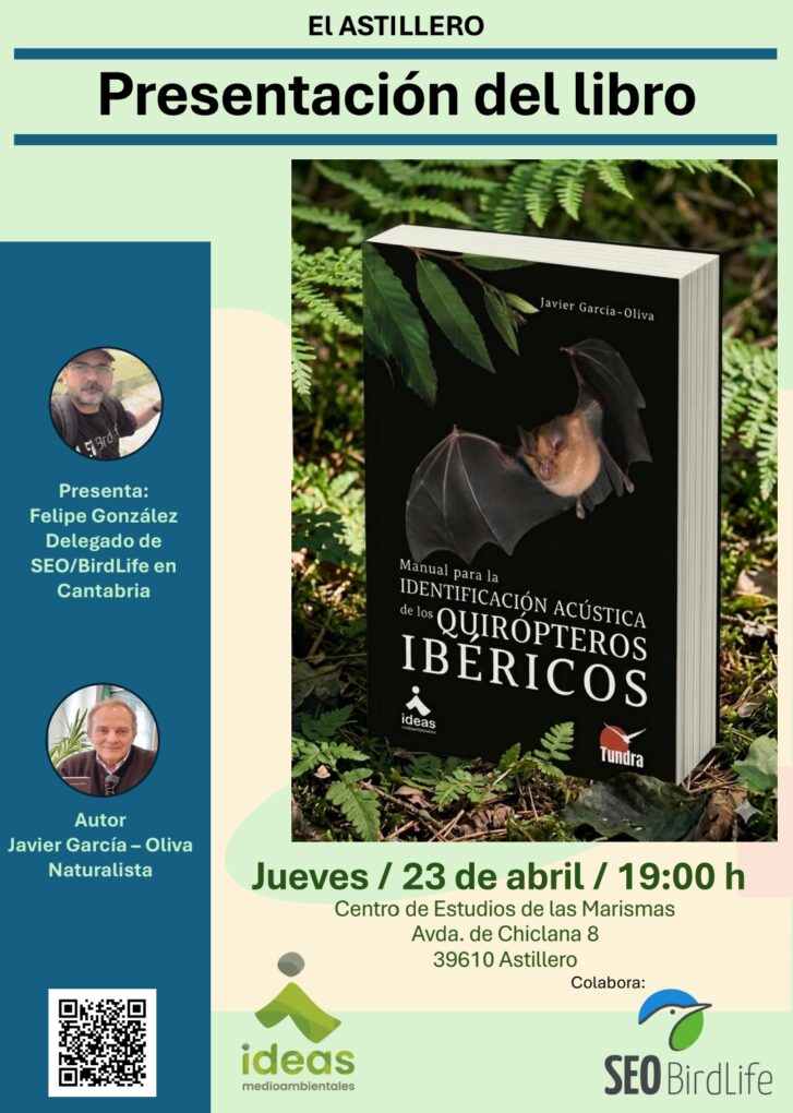 El Centro de Estudios de las Marismas de El Astillero acogerá este jueves 23 de abril, a las 19.00 horas, la presentación del libro ‘Manual para la identificación acústica de los quirópteros ibéricos’, una publicación del naturalista Javier García-Oliva centrada en el estudio y reconocimiento de murciélagos mediante técnicas acústicas.