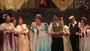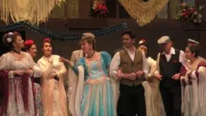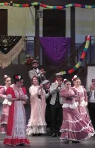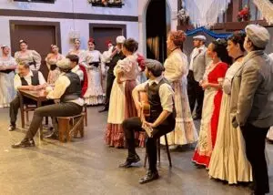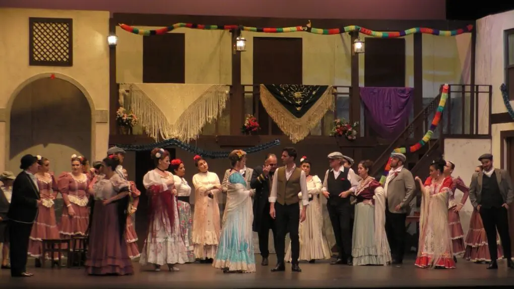 Incongruencias 1: La Revoltosa es una zarzuela con un acto único y veintiséis escenas llenas de diálogos. Su representación tal y como la ideó Chapí dura poco más de una hora. Solución en Cantabria: traer otros temas y zarzuelas para estirar la duración. Toda una gala lírica no anunciada que hace poco comprensible una romanza en tiempos de Felipe V y la guerra de sucesión donde una doncella clama ante su protector marqués “Ay, yo me vi en el mundo desamparada” (El Juramento de Gaztambide, 1858). Lo mismo sucede con un Caballero de Gracia -dandy y milord, lo más fino de todo Madrid- que es lo opuesto al Felipe de La Revoltosa. Ídem de lo mismo con El chotis del Eliseo, el lugar de baile del Madrid de Chueca y Valverde, alejado de lo que es una corrala.