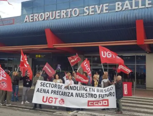 El personal de Iberia en el Seve Ballesteros se concentra contra la precarización laboral por las licitaciones del handling