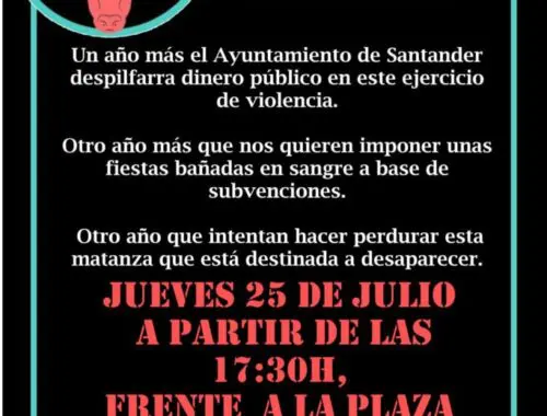 La asociación ‘Cantabria contra la tauromaquia’ convoca concentración el próximo 25 de julio
