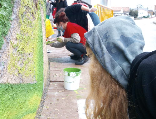 La artista gallega Doa Oa, lleva su pintura mural a Puente San Miguel