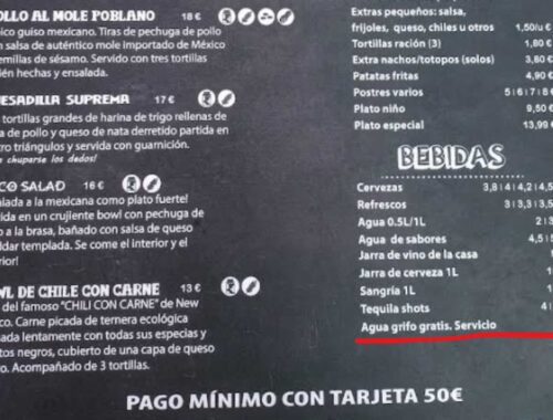 FACUA denuncia al restaurante cántabro El Mexicano de Noja por cobrar tres euros por servir agua del grifo