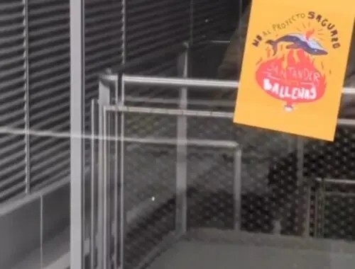 • Greenpeace despliega una lona en la sede del Santander para criticar sus políticas ambientales