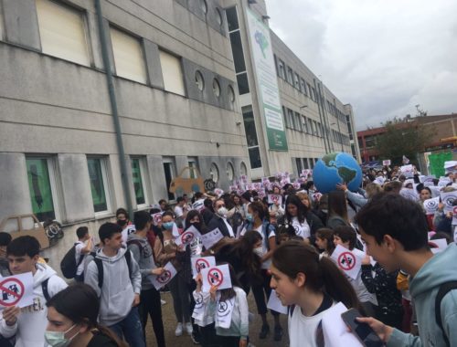 El IES Cantabria saca los pupitres a la calle para protestar contra la nueva gasolinera