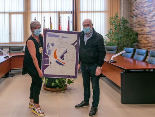 Pedro Sobrado entrega a Polanco la obra original del Premio Mujer Referente